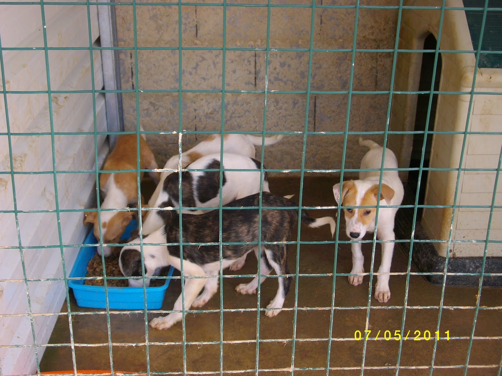 Uma das meninas (a branca e creme) já foi adoptada!